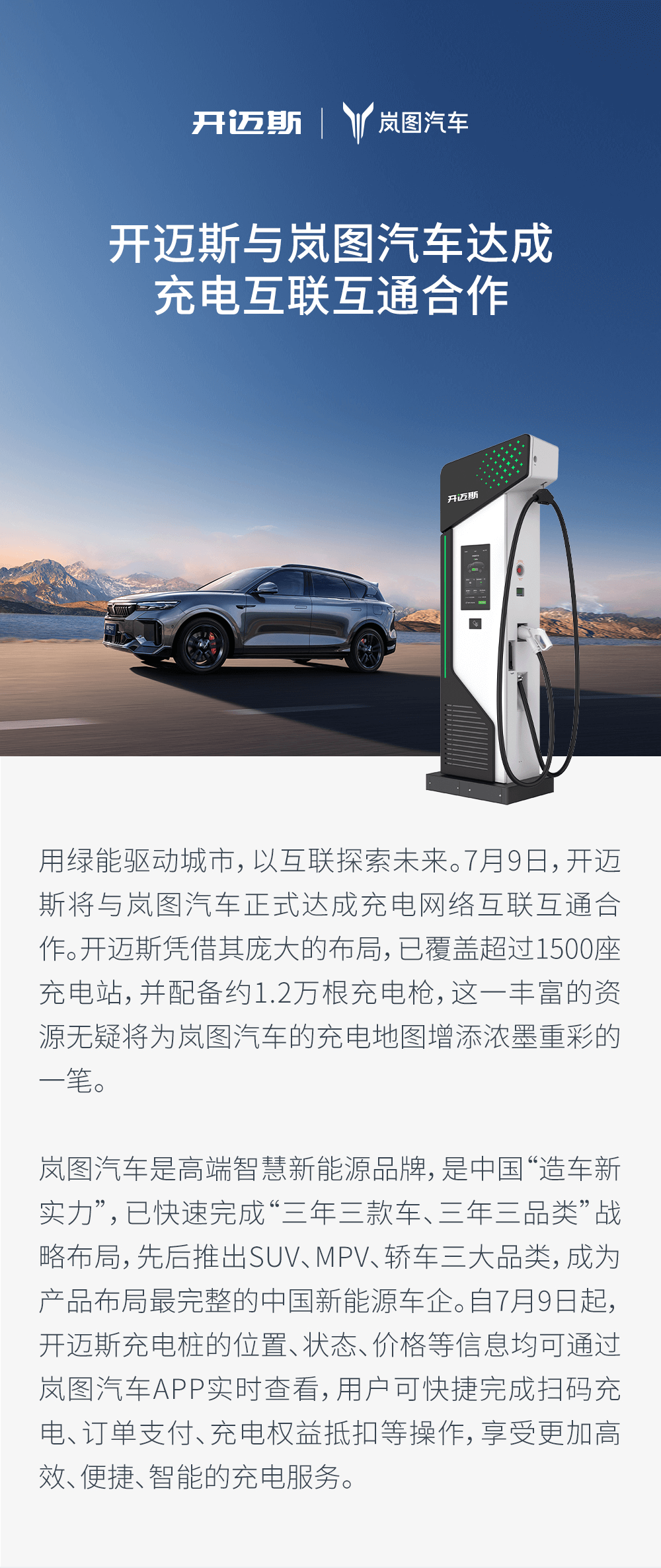 開邁斯與嵐圖汽車達(dá)成充電互聯(lián)互通合作_